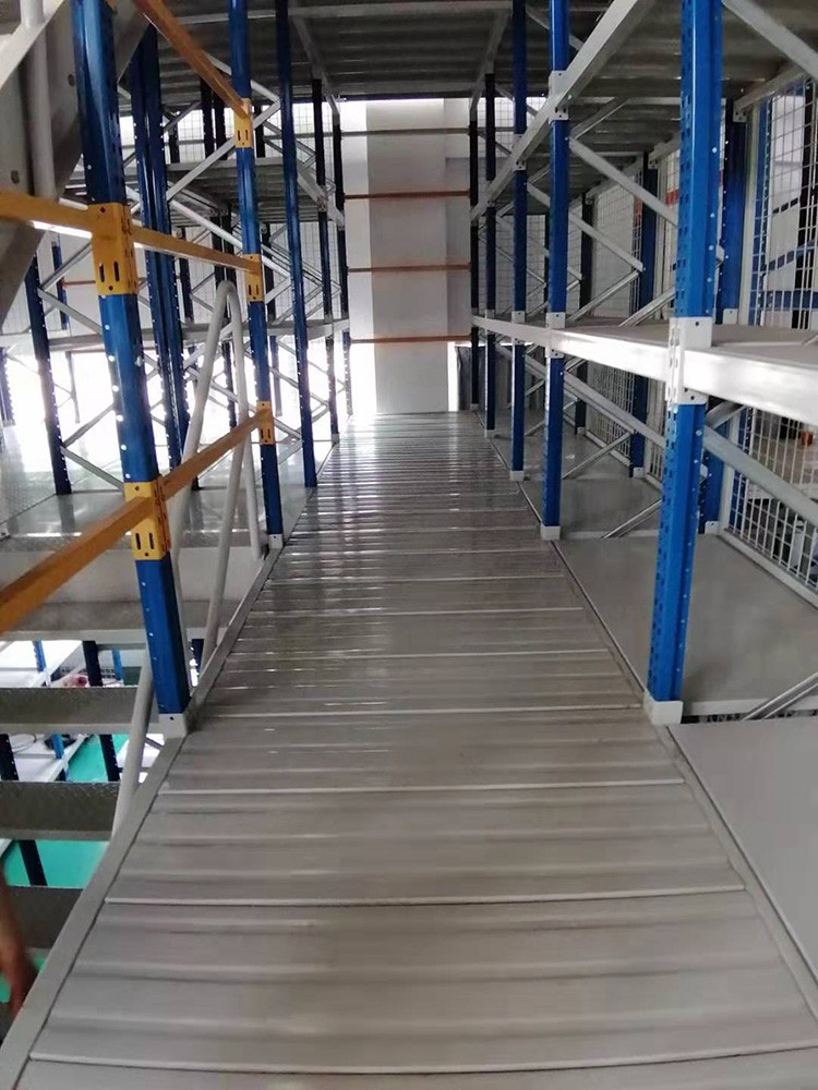 閣樓貨架系統,通常利用中型擱板式貨架或重型擱板式貨架作為主體支撐加上樓面板(根據貨架單元的總負載重量來決定選用何種貨架),樓面板通常選用冷軋型鋼樓板、花紋鋼樓板或鋼格柵樓板。